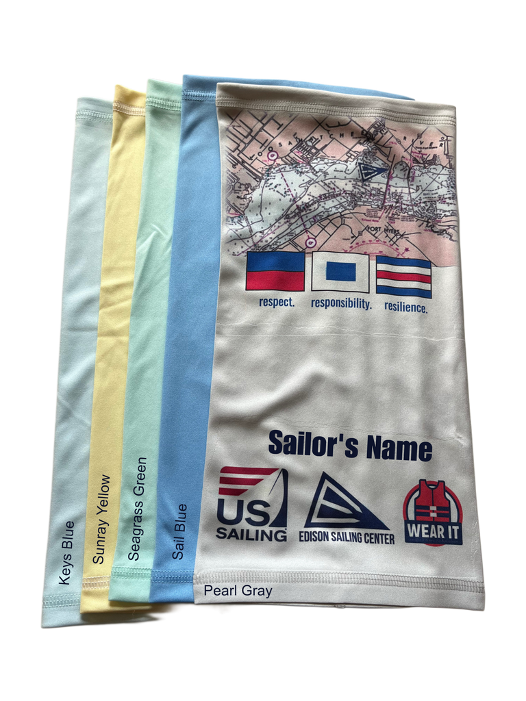 The ESC Solar Gaiter provides comfortable protection from any element. Can be worn multiple ways: as a face covering, neck gaiter, headband and more. An ultimate sailor’s accessory for solar protection, comfort, keeping hair and hats secure when catching the wind!