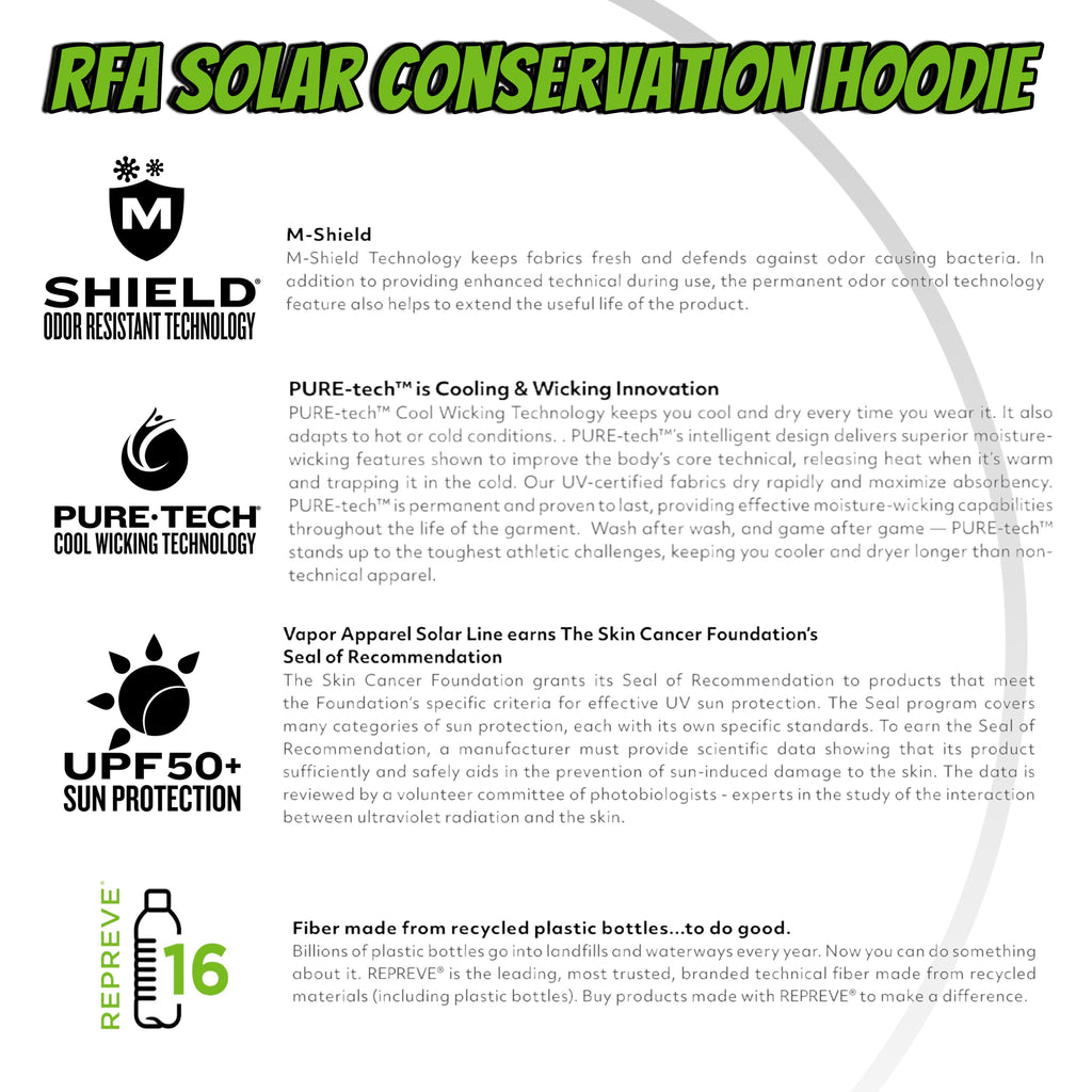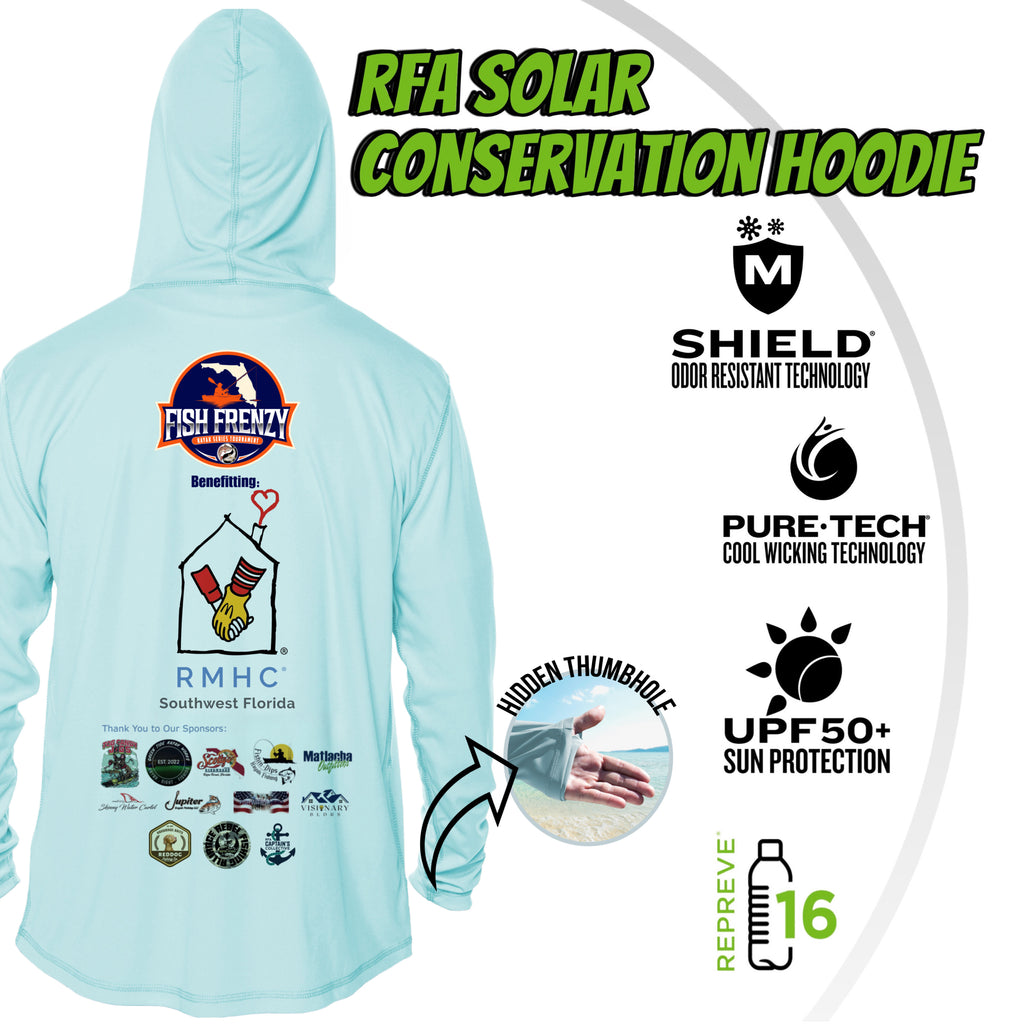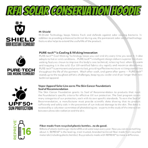 Long sleeve solar hoodie loaded with features to keep you cool, comfortable, and protected while out fishing!