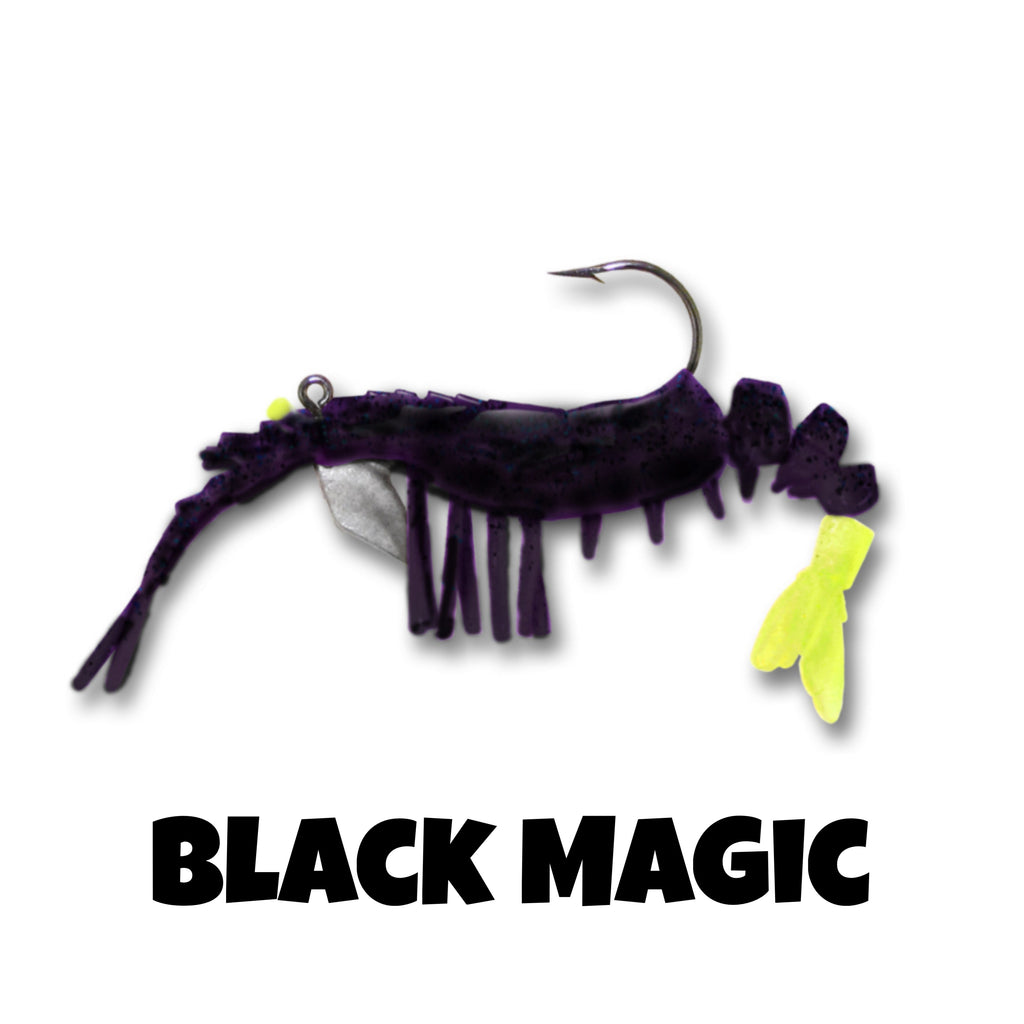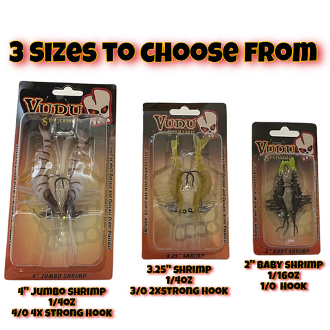 - Multiple Bait Lengths: 2” baby shrimp, 3.25” shrimp, 4” Jumbo Shrimp